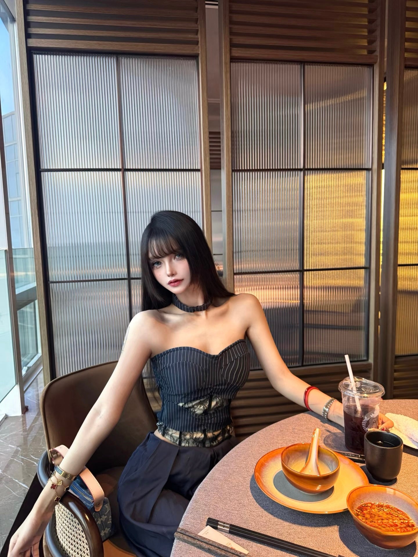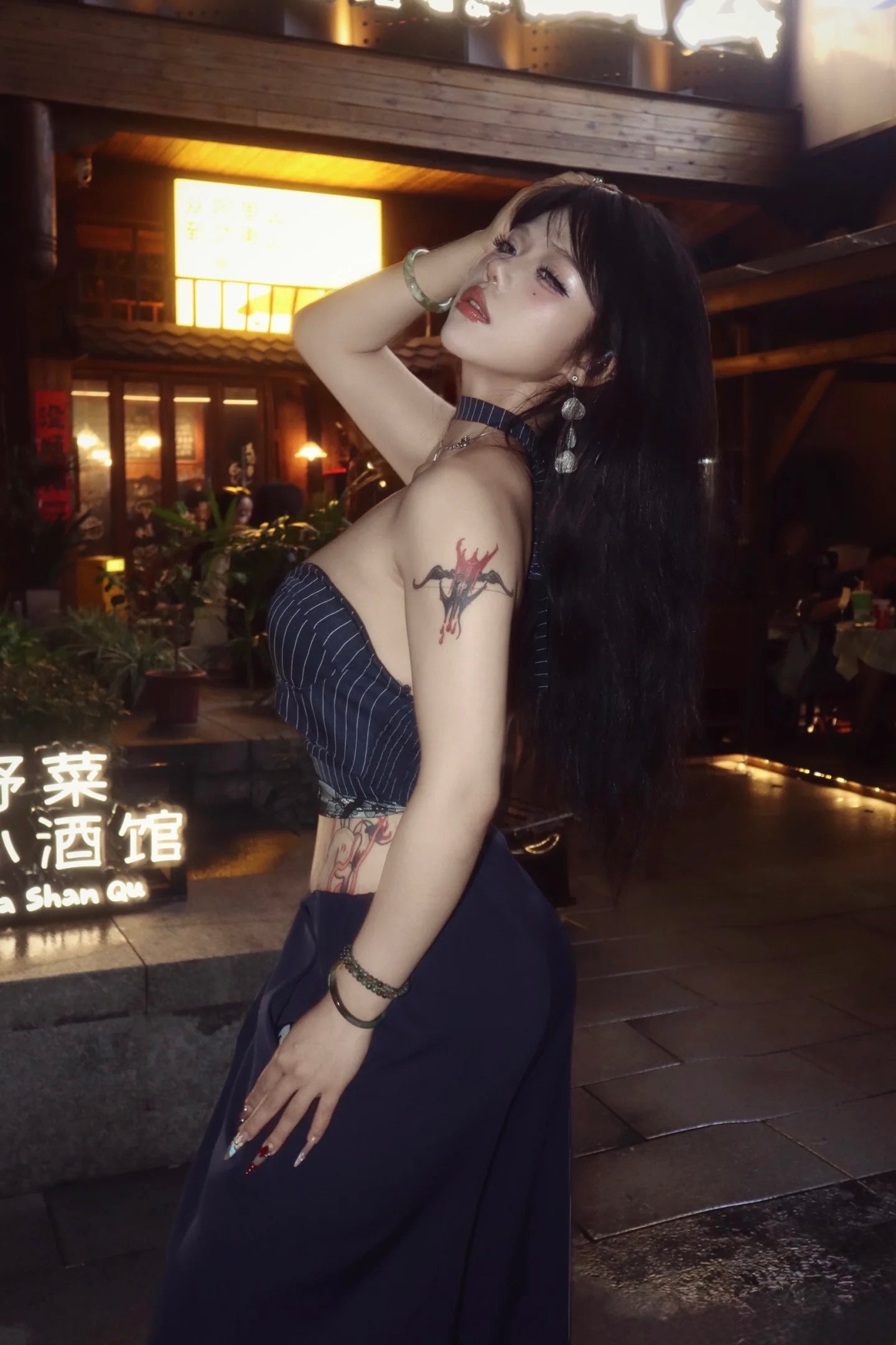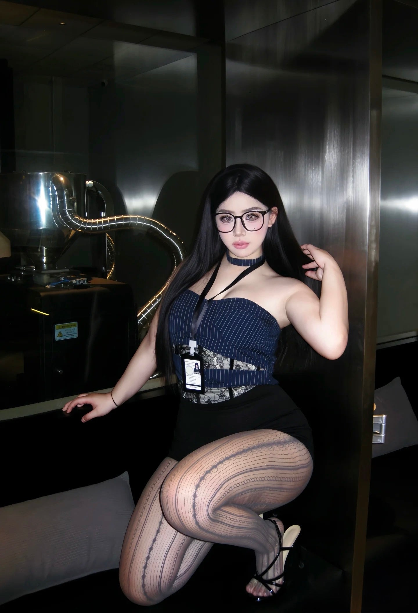Navy Blue Striped Top